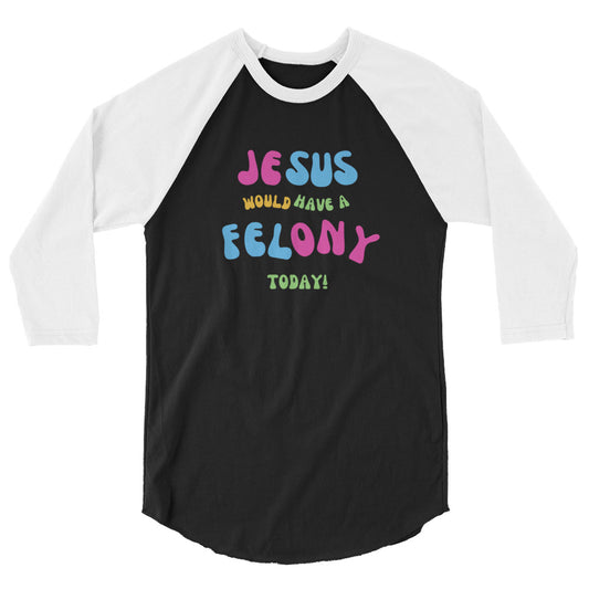 Unisex "Jesus would have a Felony Today" 3/4 sleeve raglan shirt